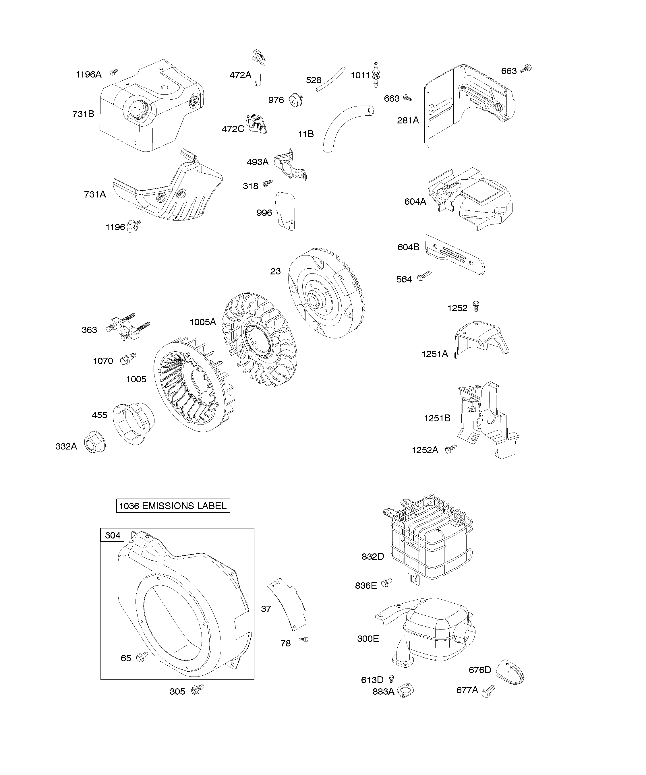1 Глушитель, маховик, корпус стартера 12R113-0703-E1
