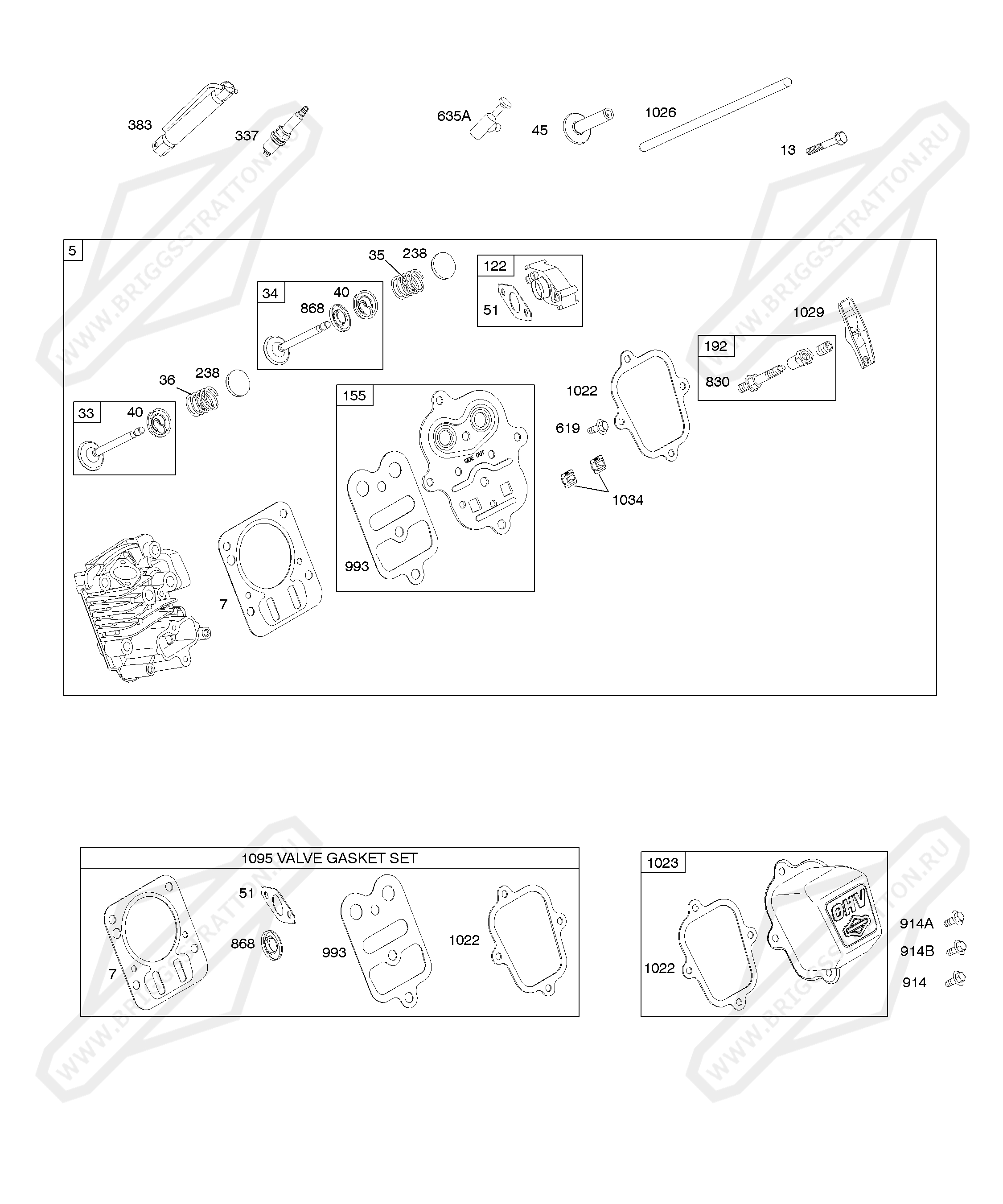 5 Головка цилиндра, прокладки 12R113-0703-E1