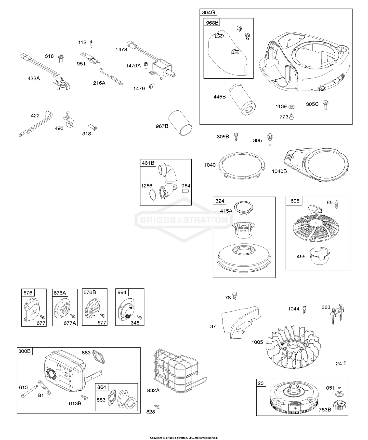1 Air Cleaner, Blower Housing, Exhaust System, Flywheel, Ready Start | 31R577-0027-B5 | Briggs&Stratton | Запчасти