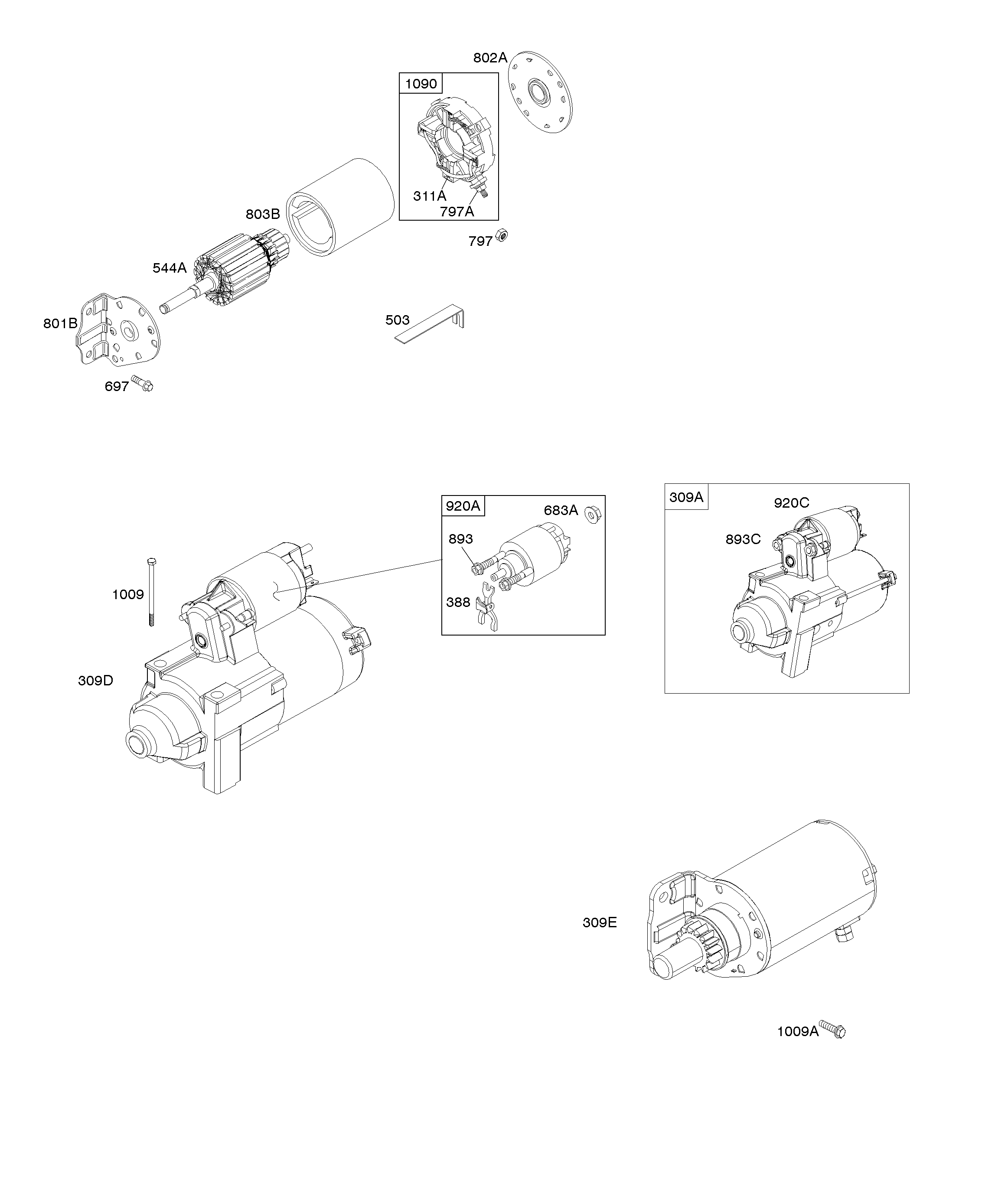 4 Корпус вентилятора, стартер, детали стартера 356447-0215-B1